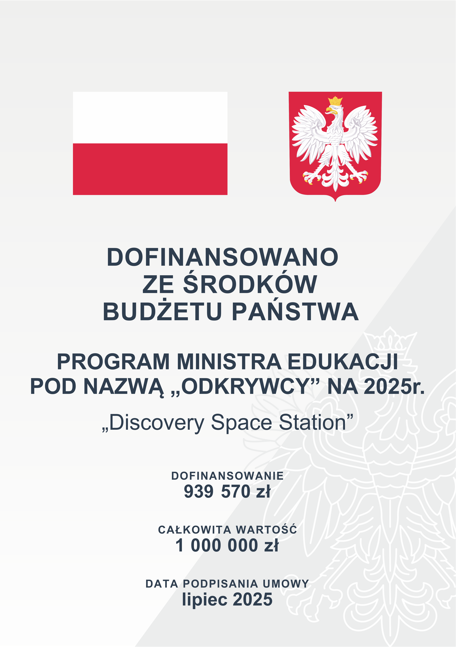 Projekt "Discovery Space Station" współfinansowany jest przez Ministerstwo Edukacji Narodowej w ramach programu "Odkrywcy".